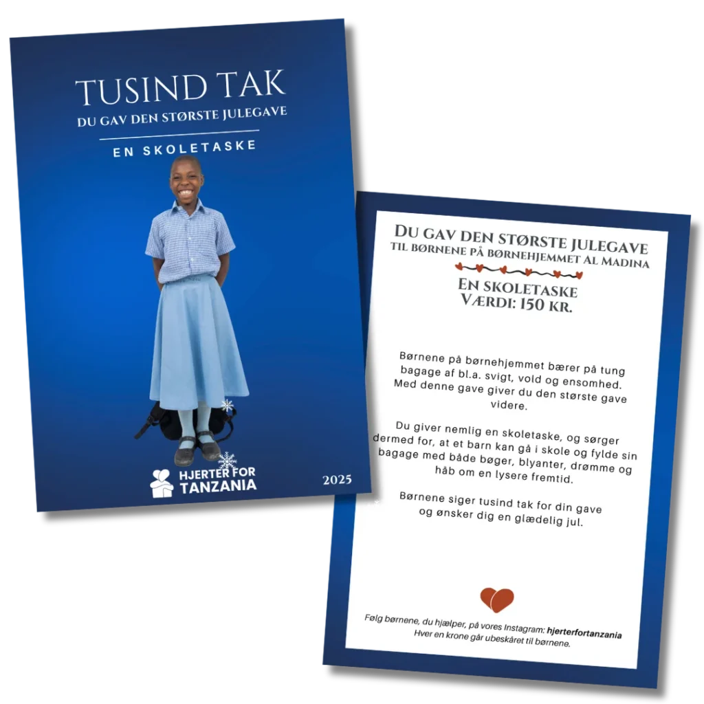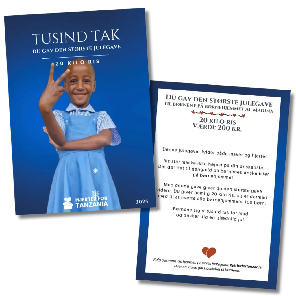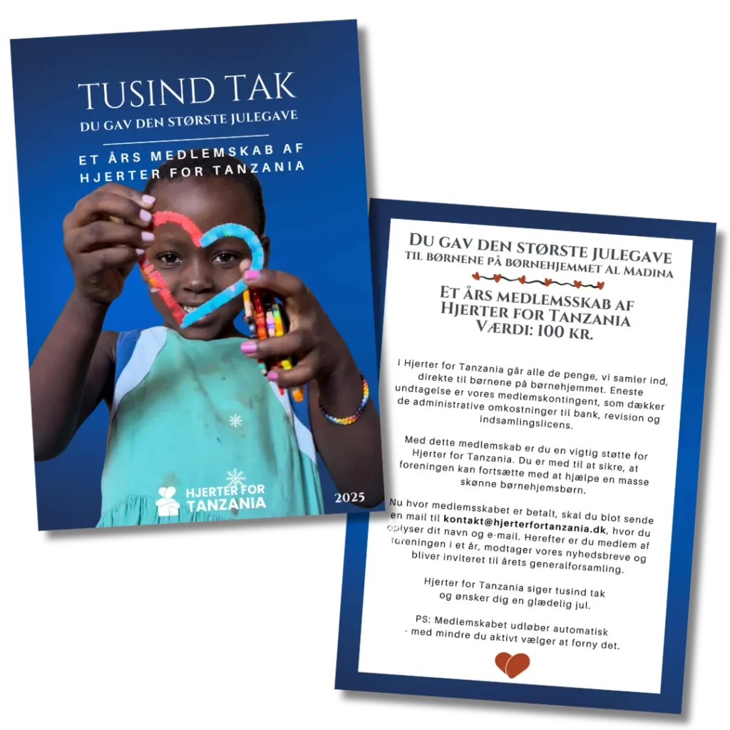 Med dette medlemskab er du en vigtig støtte for Hjerter for Tanzania. Du er med til at sikre, at foreningen kan fortsætte med at hjælpe en masse skønne børnehjemsbørn.